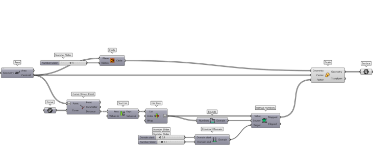Step 4: Remap Distances to Scale Factors (Curve Attractor Grasshopper)