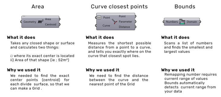 Now we find out how far each grid point is from the curves we draw. This is the core of the curve attractor grasshopper logic.